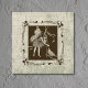 Pretty vintage illustration of fairy feeding a bird, sepia toned on distressed linen look background