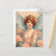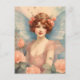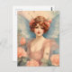 This charming vintage drawing features a lovely fairy in a rose garden. She is portrayed as being elegant and smiling, with a flower crown adorning her head. The fairy also has beautiful blue wings. The colors used in the drawing are soft and retro, giving the artwork a touch of nostalgia.