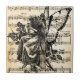 Antique fairy b/w illustration overlay on vintage sheet music background.