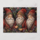 Lovely Holiday image of vintage Father Christmas. They are sporting beautiful, full wavy white beards, and wearing a Victorian style Santa suit. BAckground is a mixture of red berries, holly and pine branches.