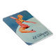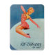Vintage Ice Capades figure skating illustration from 1947 of a female skater wearing a pink costume and skates performing a jump—a unique retro-style magnet for the ice skating enthusiast.
