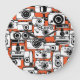 Vintage film cameras, seamless pattern. large clock