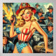 Vintage Firefighter Pin-up Poster