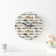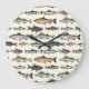 Vintage fish drawings, seamless pattern. large clock