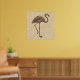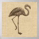 Fun square poster design features brown tinted flamingo bird illustration on light tan "burlap" background