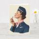 Vintage Flight Attendant Applying Lipstick Card