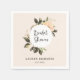 These lovely bridal shower napkins feature a wreath of elegant peach colored vintage peony flowers, with plenty of foliage, green leaves, and branches on a soft peach background.