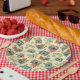 Nostalgic floral paper plate featuring vintage camera designs and delicate flower illustrations. Perfect for adding a touch of classic charm to your gift.