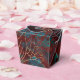Decorative gold faux foil damask pattern favor box with accents of turquoise and coral.