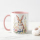 Cute sweet vintage old fashioned bunny rabbit with pink flowers done in a watercolor style by ai. Personalized Easter Mug.