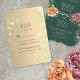 Complete your wedding stationery suite with our vintage-inspired, bohemian RSVP card, exuding modern elegance in luxurious gold tones. Adorned with chic gilded floral lace, this card sets the stage for an unforgettable celebration. The simple emerald green script adds a touch of sophistication, inviting your guests to confirm their attendance with style and grace.
