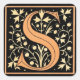 This simple letter 'S' is framed within a very pretty black and gold floral motif.