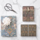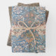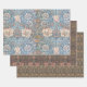 The three vintage floral wrapping paper sheets are three color variations of the Morris pattern "Honeysuckle" from 1876, by William Morris (1834 – 1896), now in the public domain. The first one is the most colorful, with white flowers on blue background, the second one has pink red flowers and the third one brown flowers.
