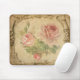 Beautiful heirloom pink roses framed by an engraved ornate scrollwork banner on a linen textured background.