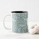 Beautiful and elegant vintage light blue floral pattern on gray background. Sophisticated and elegant customizable two-tone mug with white round tag for your monogram or name.