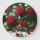 Vintage Floral Red Roses Large Clock