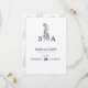 This "Save the Date" card is designed for a wedding with a vintage and elegant theme. It features a black, intricate flourish or monogram with the initials "S" and "A" on either side. The phrase "SAVE the DATE" is written in a stylized font, with a decorative line. The back of the card, visible on the left, has a subtle, repeating flourish pattern in a lighter gray tone. This design is ideal for couples who appreciate a timeless, formal, and romantic feel for their wedding stationery.