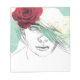 A vintage retro illustration design of a girl with a vintage hat with a large red flower. This retro design is elegant, girly and sophisticated and has a vintage fashion feel.