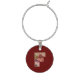 Monogram gifts for wine lovers with a rustic flower patterned initial on a burgundy background.