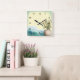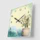 Vintage Flower Pot & Butterfly Wedding Square Wall Clock