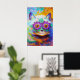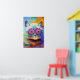 A poster for cat owners especially admirers of the wonderful, whimsical work of famous English feline artist Louis Wain. The vintage cat with big purple flower fringed orange eyes decorated with ivy leaves is a kaleidoscope of colour. The fur is streaked with rainbow shades including orange, blue, green and yellow and ears are purple and blue. The background is an explosion of pink red, orange, yellow and blue. Possibly the first ever hippie cat, the oil painting would make a lovely gift for a birthday or at Christmas, and bring a splash of colour to a new home or student flat.