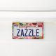 Pretty license plate frame with colorful vintage illustrations of flowers. White text, on the bottom of the frame, is ready to personalize.