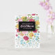 Colorful vintage flower arraignment with black stamp square for customizable text in suggested pink.