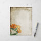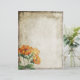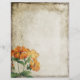 This design features lovely orange vintage Lychnis flowers on a natural toned parchment effect background.