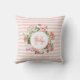 Vintage Flowers Pink Stripes Monogram Throw Pillow