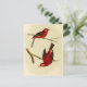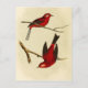 Beautiful red or Vermillion Flycatchers illustrated on a cream background. One bird is perched and the other looks ready to take flight. Brilliant red color and intricate detail are seen in this painting by artist and American ornithologist John Cassin. Painted during the in the Victorian Era, 1862
