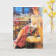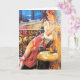 Colorful vintage illustration of a fortune teller sitting on a European terrace with her crystal ball and cards.