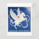 This postcard is a reproduction of a vintage library literacy poster showing a flying horse and the words, "Forward with books."
