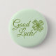 Button with four leaf lucky clover. Good luck and shamrock button in engraving style. Happy St. Patrick's Day!