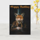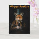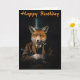 This card is illustrated with a Victorian vintage fox in a top hat and smoking a pipe. Above runs the text "Happy Birthday"