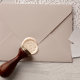Before the wax hardens, gently and evenly press the wax seal stamp into the melted wax, ensuring it's centered.