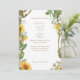 Vintage Gold Frame Sunflowers wedding invitation. Greenery.