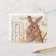 Collage of a vintage handwritten French postcard "carte postale" and an antique rabbit illustration with yellow spring daffodils.