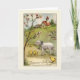 Retro / Vintage French Easter greeting card. Adorable little lamb and young chicks walking through the countryside! Joyeuses Pâques! NOTE: Glitter is printed on the card and not actual glitter. This is a replica of a vintage card.