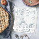 A seamless vintage pattern all about romance, this beautiful design is a collage of vintage illustrations. The paper napkin design includes the Eiffel Tower, vintage postmarks, and handwritten lettering. It's a lovely steel blue and aqua with a focus on France - full of antique fonts and graphics. Add your name or other text to the optional distressed label that has been provided. Search ID226 to see other color choices and products with this romantic pattern.