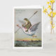 The image on this card was adapted from a vintage postcard. It shows a frog carrying a cattail and riding on a goose in flight.