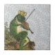 Vintage illustration of a Prince Charming frog, wearing a crown and playing violin.