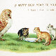Vintage Victorian owl and cats New Year card. High quality, custom restored vintage image from 1800s.