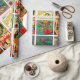 Fun pattern features a variety of colorful early 20th century vintage fruit crate labels