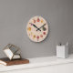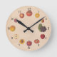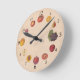This wonderful clock features a variety of vintage fruit illustrations. Including persimmons, oranges, pears, apples, peaches, grapes, and plums.