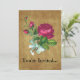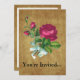Stylish and elegant vintage dark pink fuchsia magenta rose with a light blue ribbon against an aged paper background. A pretty and nostalgic gift for mother's day, grandma or on any occasion!