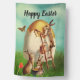 Vintage Funny Bunny And Easter Egg House Flag features bunnies decorating the Easter egg with gold paint,orange tulip flower and gold butterfly.A Perfect design for Easter Celebration.Kindly visit my store " https://www.zazzle.com/store/loveyouart" for other or similar designs .