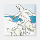 A vintage funny drawing of 3 polar bears sliding on snow.