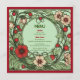 This wedding menu captures the vintage charm of the Art Nouveau style, featuring an intricate garden design in bright, contrasting colors.