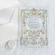 These stunning and beautiful Baptism or Christening clear acrylic invitations feature an antique, whimsical baroque illustrated frame decorated with colorful flowers and leaves in subtle shades of peach, pink, purple, green, and neutrals. A fairytale look that also recalls the Art Nouveau style or regency elegance. Elegant calligraphy and classic gray and purple text add to the luxe botanical design. A faux gold cross is hidden amongst the illustration.