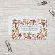 A pretty modern-vintage business card with pink, purple, and yellow flowers, a rustic blue bookplate, and a light blue background. Add company details to the back of the card.
